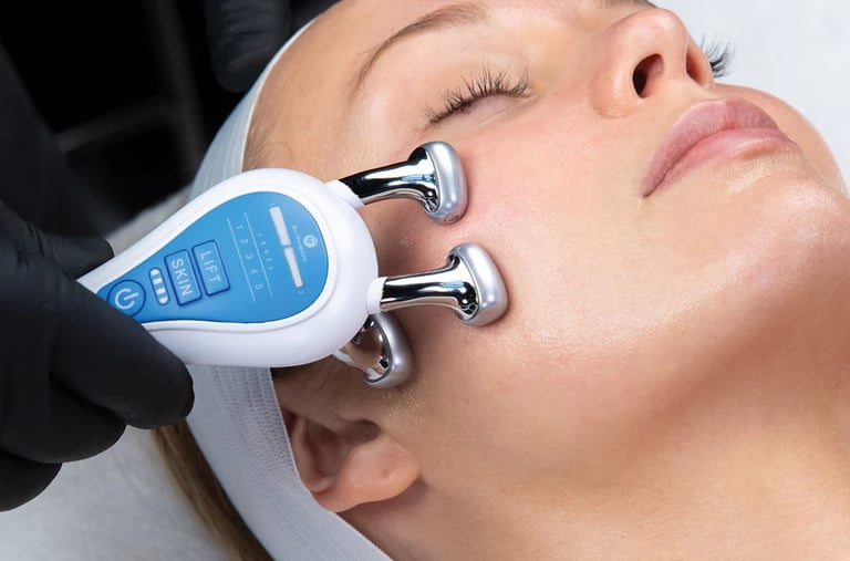 Add facial sculpting to your skin health facial with micro current lifting technology. This non-invasive treatment helps stimulate collagen & elastin production whilst firming and lifting facial muscles and brightening your skin. No downtime at all. 'Pilates for your face'